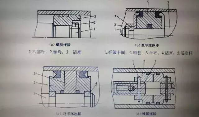 可以把短行程的液壓缸的活塞桿與活塞做成一體,這是簡單的形式。但當(dāng)行程較長時(shí),這種整體式活塞組件的加工較費(fèi)事,所以常把活塞與活塞桿分開制造,然后連接成一體。