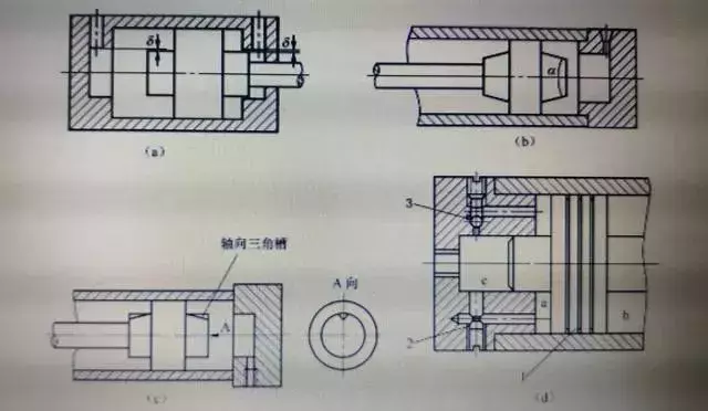 液壓缸高壓腔中的油液向低壓腔泄漏稱為內(nèi)泄漏,液壓缸中的油液向外部泄漏稱為外泄漏。由于液壓缸存在內(nèi)泄漏和外泄漏,使得液壓缸的容積效率降低,從而影響液壓缸的工作性能,嚴(yán)重時(shí)使系統(tǒng)壓力上不去,甚至無法工作;并且外泄漏還會(huì)污染環(huán)境,因此為了防止泄漏的產(chǎn)生,液壓缸中需要密封的地方必須采取相應(yīng)的密封措施。液壓缸中需要密封的部位有:活塞、活塞桿和端蓋等處。